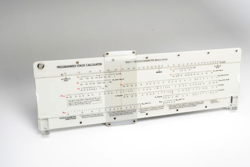The M5-SRN is a manual slide rule nomograph for determining proper nozzle size and isokinetic sampling rate.